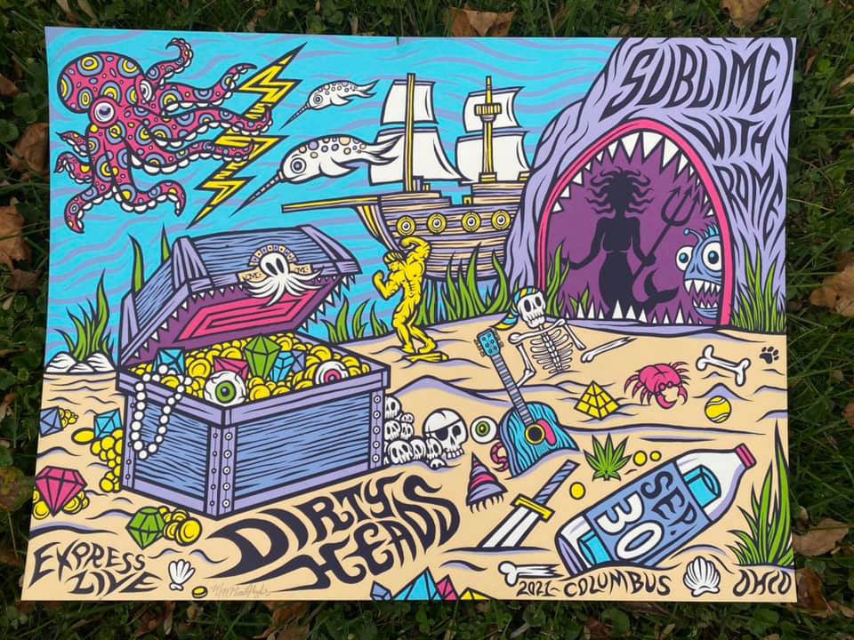 Poster designed for the 2021 Dirty Heads show at Express Live in Columbus, OH. Screenprinted by Native Press