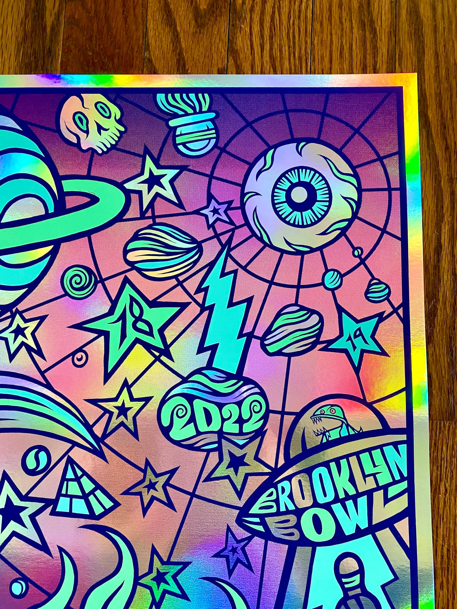 Poster designed for Twiddle's 2022 Brooklyn Bowl shows in Brooklyn, NY. Screenprinted by New Duds